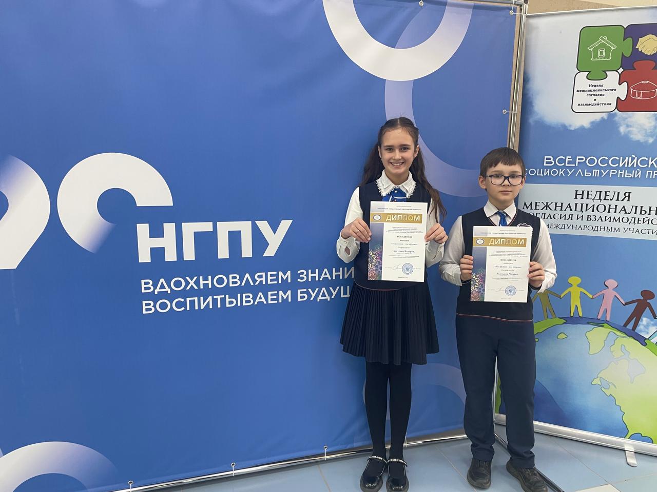 Учащиеся 5М приняли участие во Всероссийском социокультурном проекте «Неделя межнационального согласия и взаимодействия — 2025» ( с международным участием). Жюри Областного конкурса сочинений «Мы разные — мы дружим»- под эгидой НГПУ — в номинации «Авторское стихотворение» высоко оценило поэму, назвав победителем Аталыкова М и Костенко В., покорив жюри сказкой о гномике Дружбике, который семенами Веры в Добро разбил все чары Зла, стала победителем в номинации «Радуга дружбы».