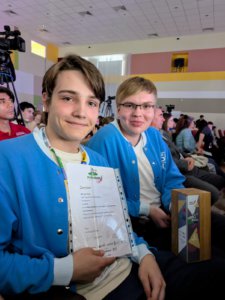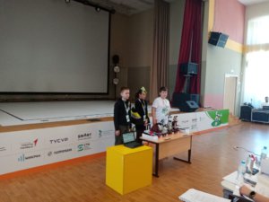 Шоу с роботами RCJ OnStage младшая категория — Иванова Виктория (5М), Батюченко Кирилл (5М) и Колотай Павел (5М).