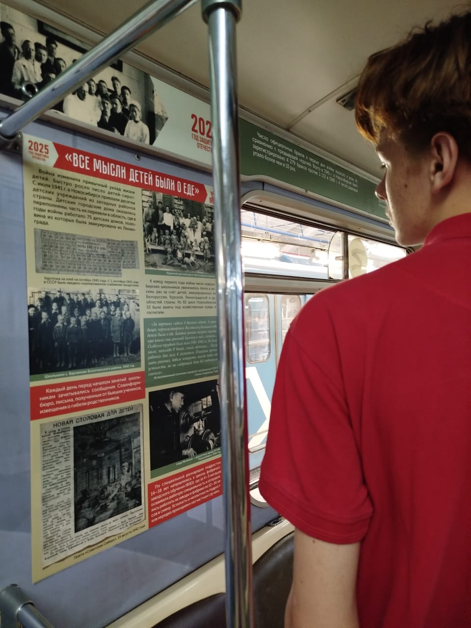 Уникальная возможность была предоставлена учащимся 8М — участвовать в открытии тематического вагона «Тыл для фронта» в поезде- музее новосибирской подземки. Вдохновитель проекта Л А. Монахова, директор фонда «Родное слово», сотрудники краеведческого музея, руководство метрополитена пригласили на торжественную презентацию членов Общественной палаты НСО, учащихся колледжа им. А И. Покрышкина и наших юнармейцев. Раритетные материалы, представленные на стенах вагона, рассказывают о беспримерной стойкости тех, кто ковал победу вдали от кровопролитных боёв. И трудовой подвиг женщин и детей в тылу был сродни ратному.