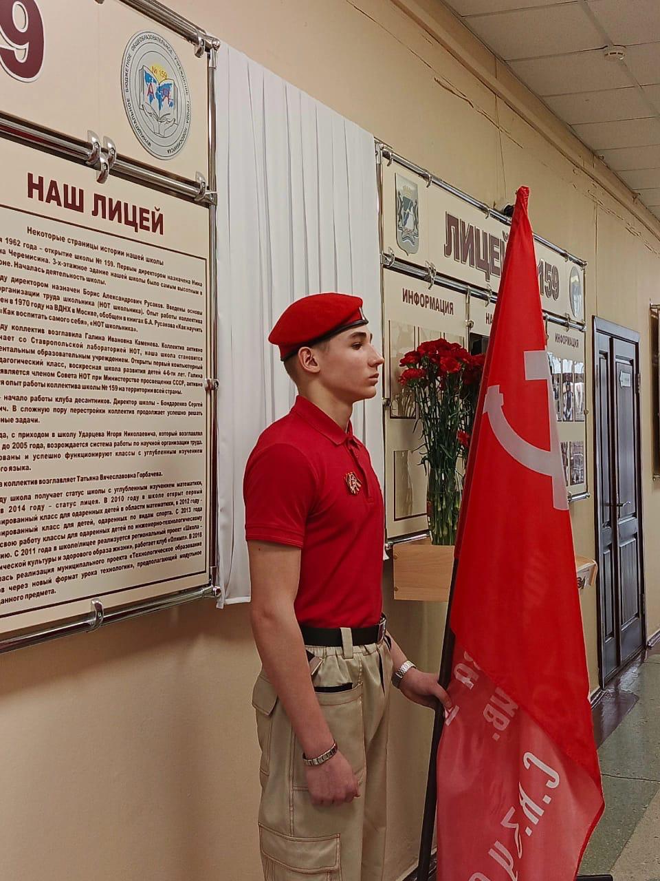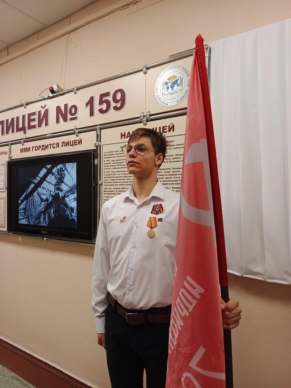 В год защитника Отечества и 80-летия Победы эстафета памяти в лицее началась в апреле с участия в региональной общественно-патриотической акции «Часовой у Знамени Победы». По отзывам ветеранов, школьники, стоящие в почетном карауле у знамени — правнуки легендарного поколения победителей, и есть те, кто не допустит повторения тех страшных событий, не предаст забвению подвиг людей, отдавших жизнь за мирное небо над нами.