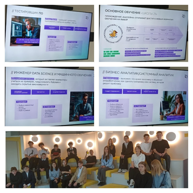 Недавно ребята из 9 «Г» сделали шаг в новое направление, посетив кампус «Школа 21», расположенный на высоте птичьего полета, 20 этаже. Это место, где цифровые технологии сочетаются с творчеством, а возможности для изучения профессий в сфере информационных технологий просто безграничны. Лицеисты узнали о разных специальностях: от веб-разработчиков до специалистов по кибербезопасности, оставаясь под впечатлением от увлеченных рассказов профессионалов своего дела.