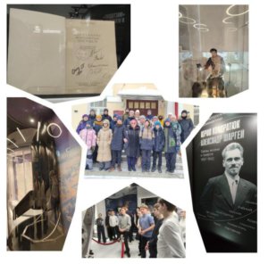 13 февраля ученики 7 «М» класса побывали в музее космонавтики имени Юрия Васильевича Кондратюка, расположенном в величественном историческом здании 1924г, где недавно была завершена реконструкция. В этом доме работал почетный житель Новосибирска, один из основоположников космонавтики Юрий Кондратюк (Александр Иванович Шаргей).