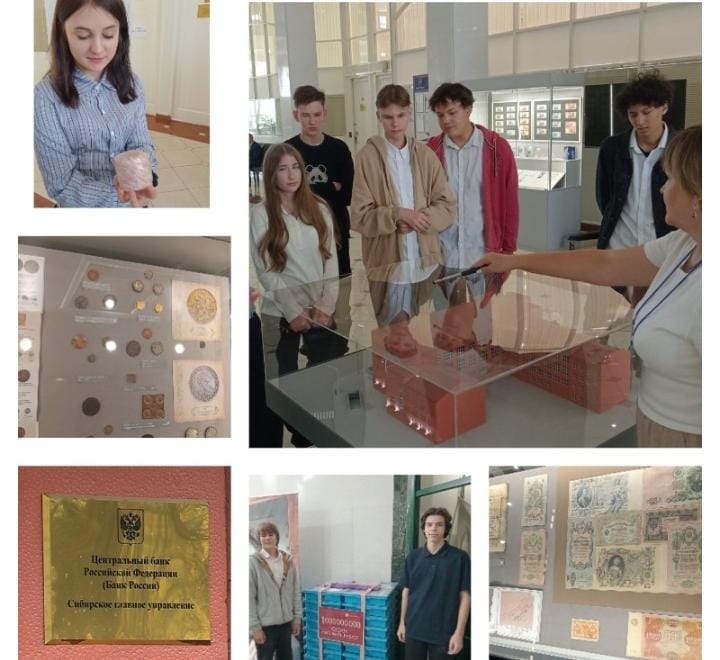 Как только группа вошла в банк, их встретил работник банка, который провел подробный инструктаж о правилах поведения, а также сообщил, что ребята попали в Сибирское главное управление Банка России (г. Новосибирск). О создании Центрального банка России и его роли в экономике страны ребятам рассказывали два гида, Ольга и Наталья. Ребята узнали о развитии денежной системы России, а также о том, как изменялись монеты и банкноты с течением времени.