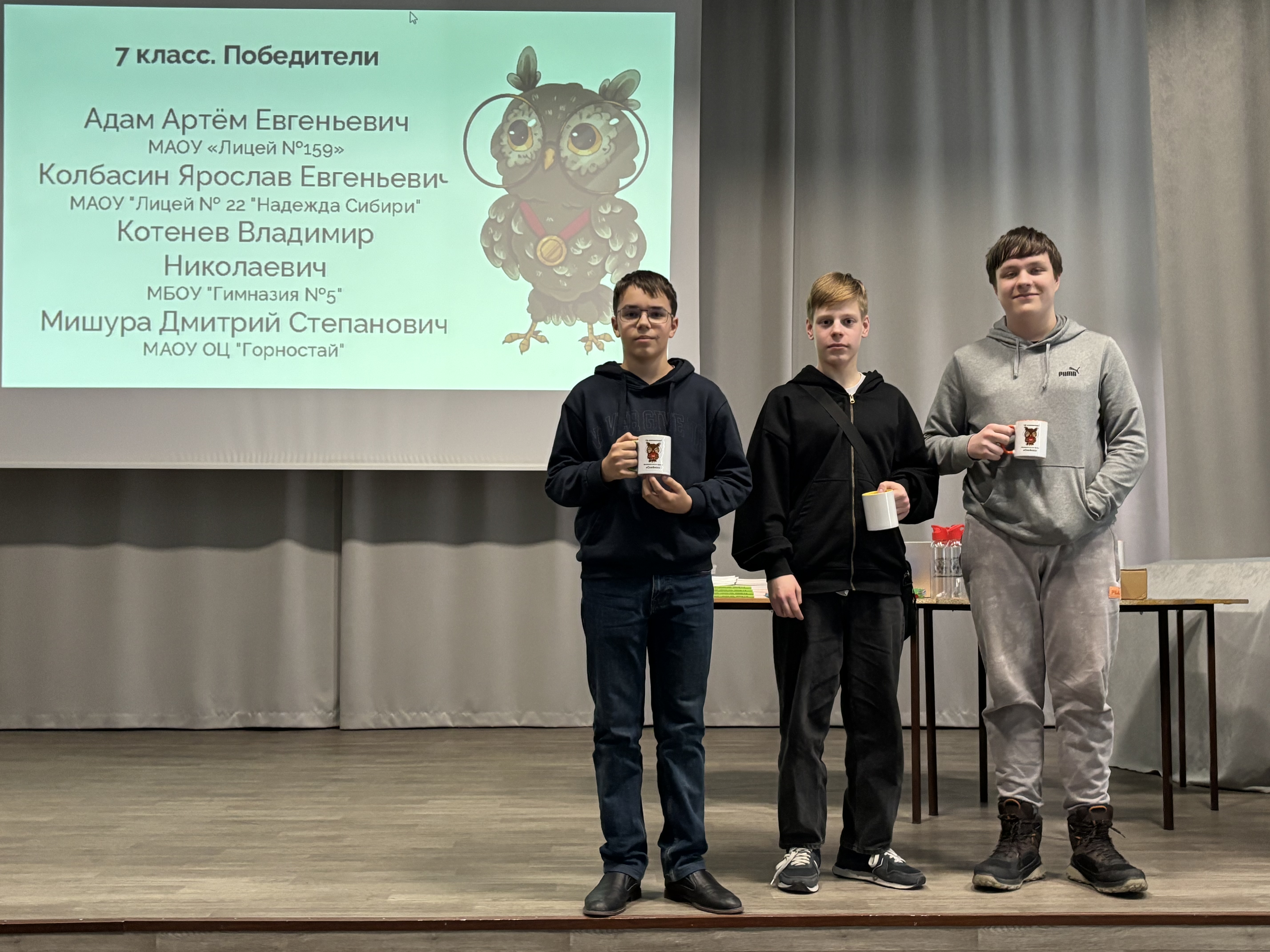 Карл Артём (7М), Дорохин Глеб (7Б), Матвеев Мирон (8М) – III место (каждым участником решено по 5 задач);