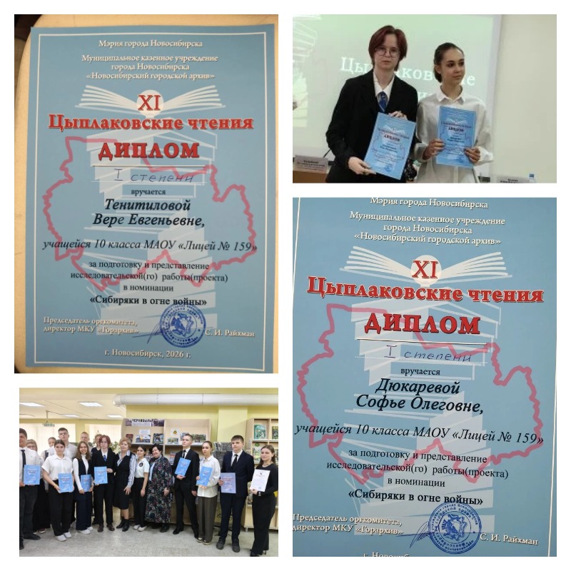Особенно знаменательно, что учащиеся нашего лицея Дюкарева Софья и Тенитилова Вера были удостоены дипломов I степени. Высоких наград они добились под чутким руководством своих учителей, Плеваковой Нины Ивановны и Кайгородцевой Татьяны Борисовны, которые помогли им подготовить глубокие и содержательные исследования, высоко отмеченные жюри. Этот успех — яркое подтверждение плодотворного сотрудничества наставников и учеников, их общего интереса к истории родного города и высокого уровня подготовки.