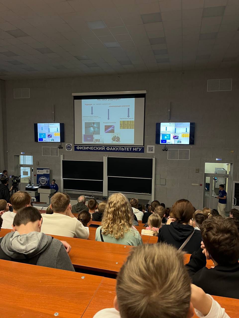 Старостина Елена Валериевна, научный сотрудник Института ядерной физики, провела лекцию на тему «Радиация. Большие возможности невидимого света». Радиация — важный и незаменимый фактор в медицине и науке, но требует строгого контроля и безопасности из-за потенциального вреда для здоровья человека.